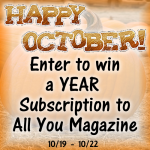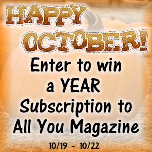 Enter to win an annual subscription to the coupon-packed All You Magazine!  Ends October 22nd.